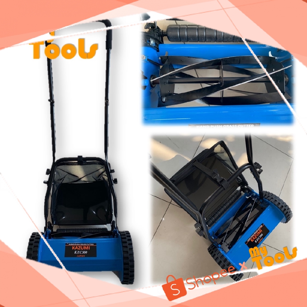 Kazumi Kzc 300 300mm Manual Hand Push Lawn Mower Brush Cutter With Grass Basket Shopee Malaysia